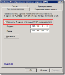 Почесывая затылок, вспоминаем о чудесной возможности NAT назначать адреса, смотрим, включена ли она: